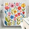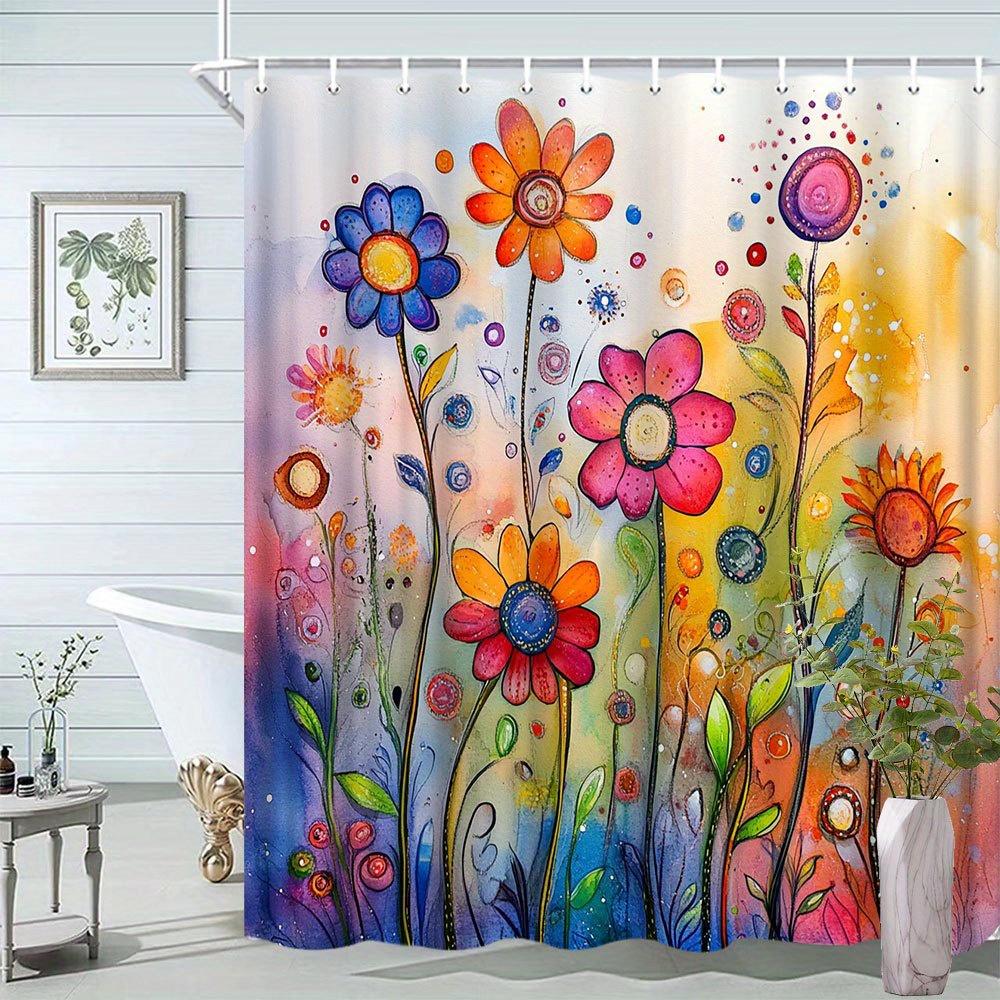 Floral Pattern Shower Curtain - Colorful Creative Design, Polyester Bathroom Decor, 12 Hooks