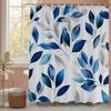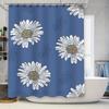 Modern Style Waterproof Shower Curtain Blue Floral Print Bathroom Decor Privacy Room Divider for Home Bathrooms