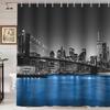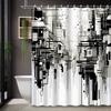 Black White City View Waterproof Polyester Bathroom Shower Curtain No Drill Hooks