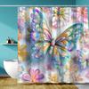 Hand Drawn Butterfly Shower Curtain White Floral Printed Bathroom Decor for Kids Bedroom Home Decoration 72 x 78 inches (183x200