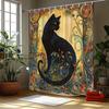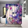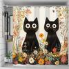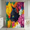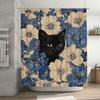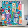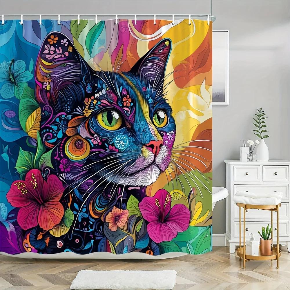 Cute Cartoon Cat Shower Curtain - Watercolor Painting Style, Fun Cat & Flowers, Modern Leisure Design, 12 Hooks