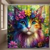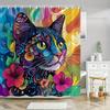 Cute Cartoon Cat Shower Curtain - Watercolor Painting Style, Fun Cat & Flowers, Modern Leisure Design, 12 Hooks — купить товар онлайн с бесплатной доставкой по всему миру!