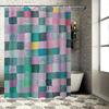 Geometric Art Shower Curtain - Blue Gradient Block Design, Modern Minimalist Bathroom Decor, Polyester Fabric,12 Hooks