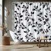 Black Peony Floral Shower Curtain Abstract Vintage Flower Blossom Plant Leaves Modern Elegant Women Cloth Fabric Waterproof