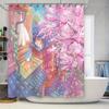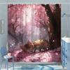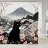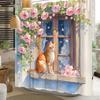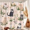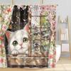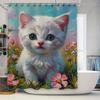 Flowers and Cat Shower Curtain Watercolor Pink Floral Cute Pet Animal Kitty Kitten Aesthetic Bathroom Decor Curtains Set with
