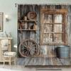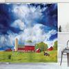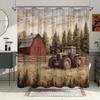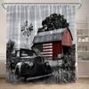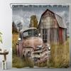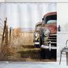 Rustic Shower Curtain Old Wooden Barn with Rusted Tractor Hillside Wooden Fence and Trees Cloth Fabric Bathroom Decor with Hooks