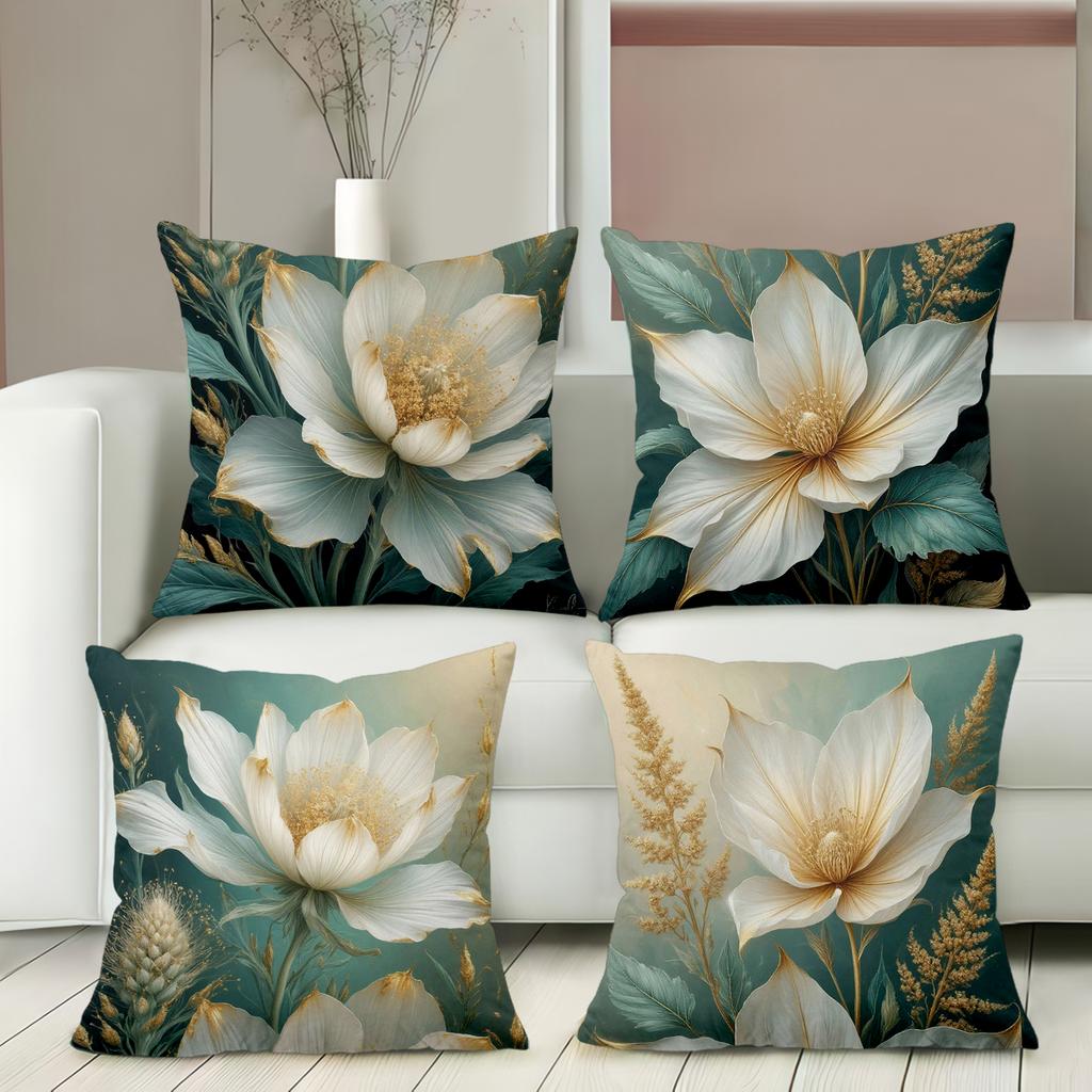 Floral Patterned Cushion Covers Green Gold Flower Decor Polyester pillowcase, sofa decorative cushion cov Headboard Pillow