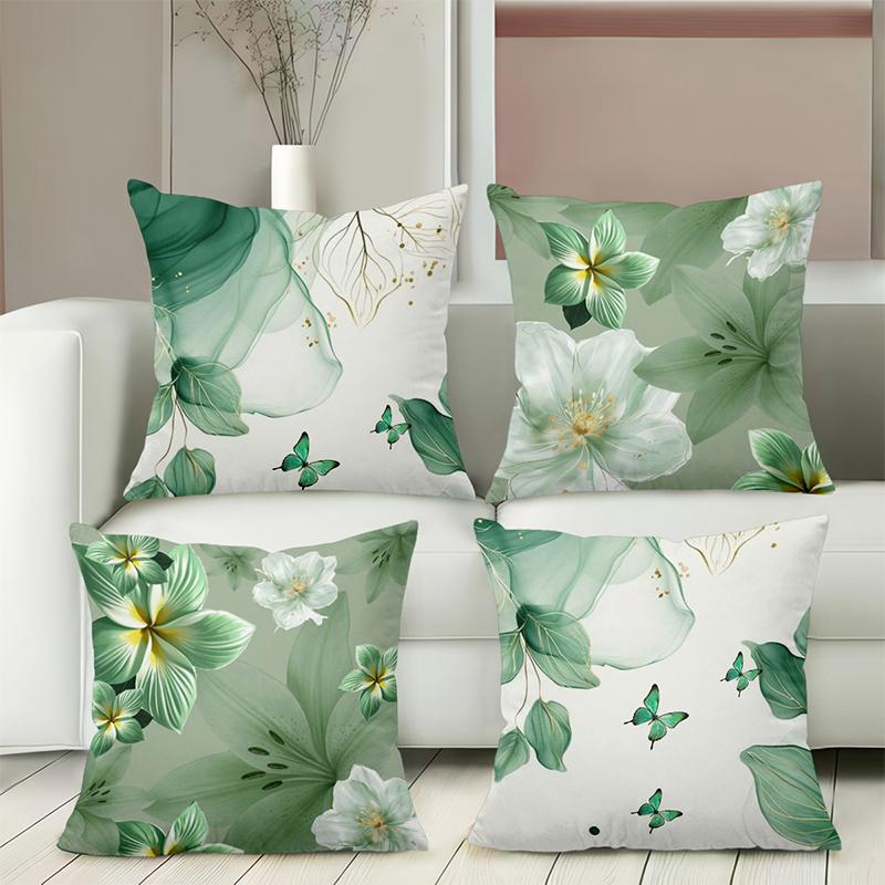 Green Floral Butterfly Printed Decorative Throw Pillow Cases Polyester pillowcase, sofa decorative cushion cov Headboard Pillow