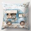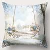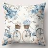 Blue Floral Patterned Cushion Covers With Cottage Scenes Polyester pillowcase, sofa decorative cushion cov Headboard Pillow