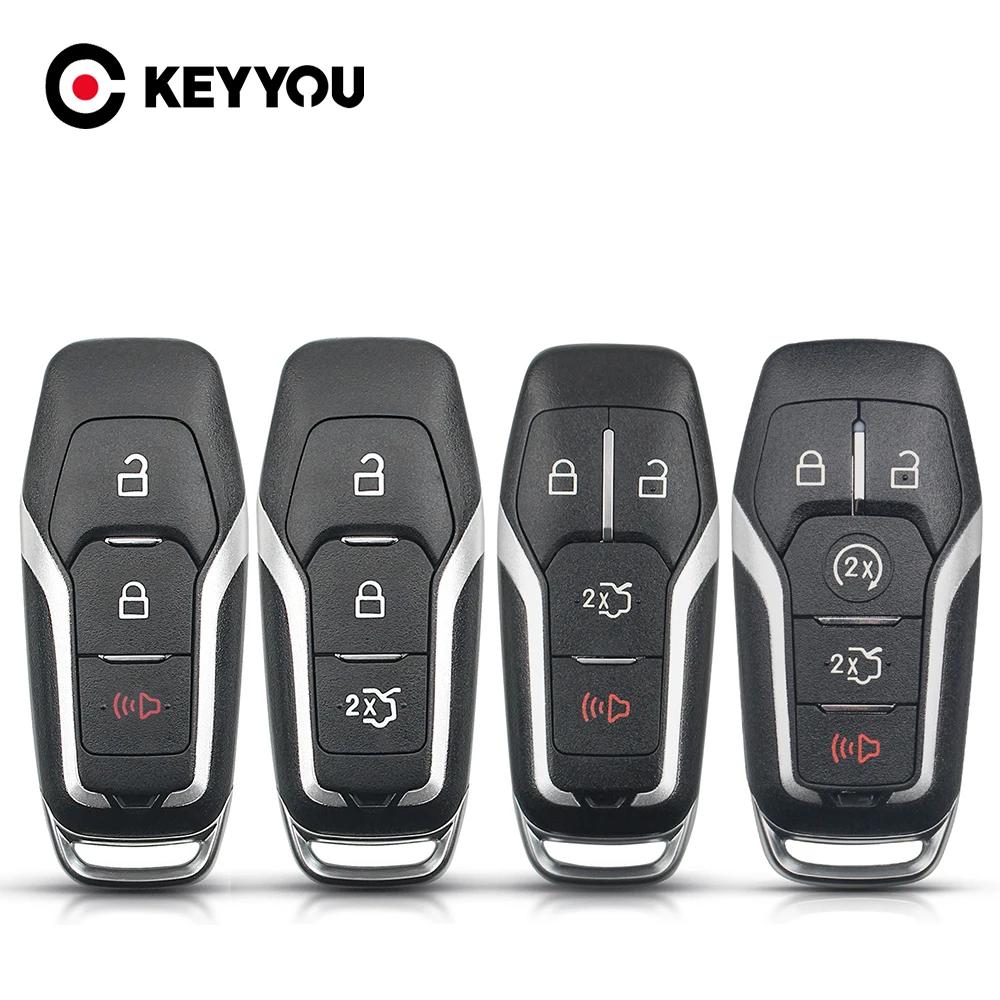 KEYYOU For 2015 2016 2017 Ford F-150 Explorer Edge Mustang Fusion Fob 3/4/5 Buttons Remote Smart Car Key Shell Case