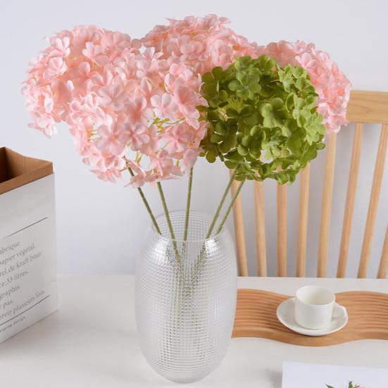 This artificial flower features soft, naturally transitioning colors ideal for weddings, floral arrangements, and commercial dcor, as well as home settings like living rooms and dining tables. Crafted from high-quality materials, its petals showcase clear textures and naturally curved edges, perfectly mimicking the fluffy look of real hydrangeas. The oversized, round flower head is densely layered, creating a full, three-dimensional appearance that adds a luxurious touch without needing additional accents.