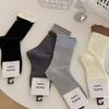 Женские носки в японском стиле в рубчик с полосками, средней длины, серая пэчворк, имитация двух пар, для весны/осени, универсальные, девичья мода