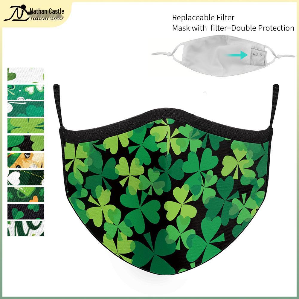 Irish Festival Shamrock Print Sun Protection Breathable Face Mask - Adult Double Layer — купить товар онлайн с бесплатной доставкой по всему миру!