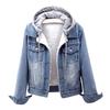 Женская зимняя куртка с капюшоном, однотонная, с длинными рукавами, съемная шапка, толстая, сохраняющая тепло, однобортная, плюс размер, плюшевое джинсовое зимнее пальто для повседневной носки