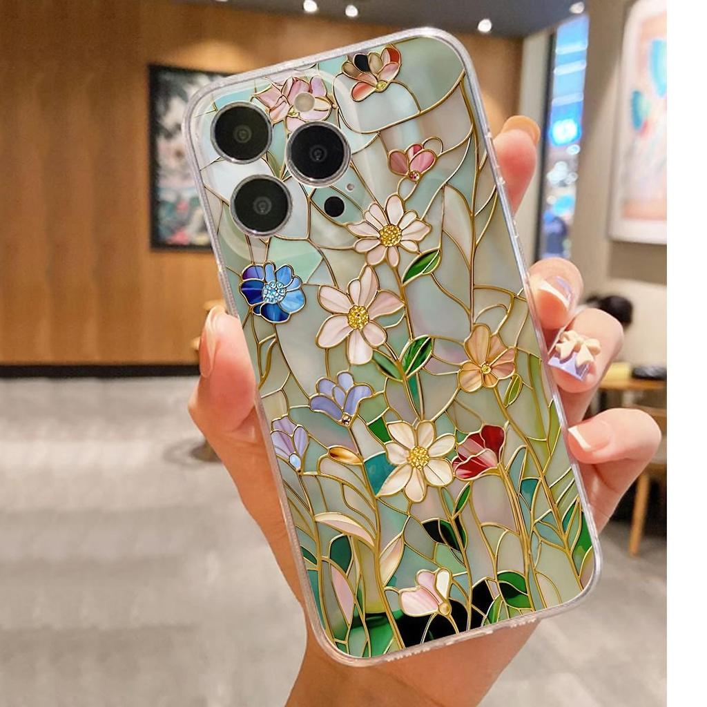 Colorful Flower Edge-Accent Transparent Case for iPhone 14/15/16/17 Pro Max