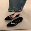 Французские туфли Мэри Джейн с острым носком и стразами, женские, новые на весну и осень 2025 года, на плоской подошве, милые, с мягкой подошвой, вечерние туфли, обувь с украшениями