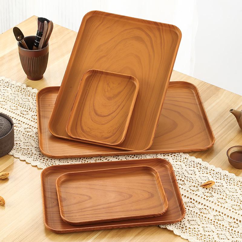 Rectangular Wood Grain Serving Tray for Cake, Fruit, Coffee, Dessert, and Storage