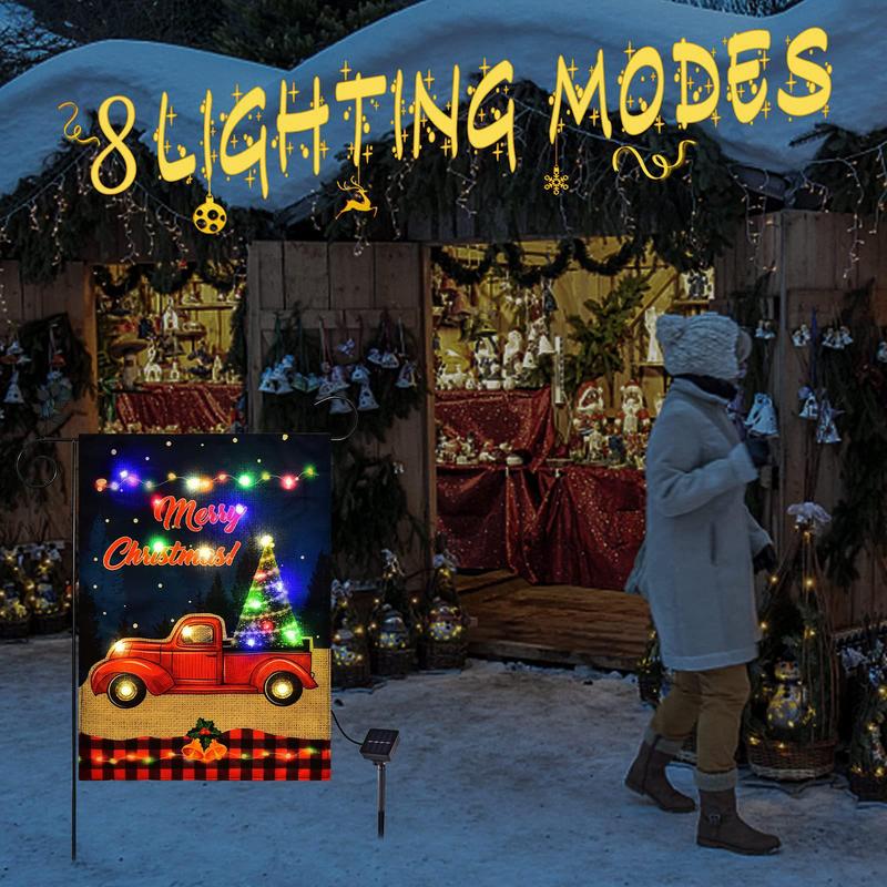 4.Automated Lighting: Say goodbye to manual switches - this lighted Christmas garden flag effortlessly turns on at dusk and shuts off at dawn with a built-in auto on/off function.