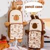 Набор канцелярских принадлежностей с капибарой, милый пенал со стикерами, скрепками, блокнотом, плюшевой брошью, маркером, сумка для хранения для студентов