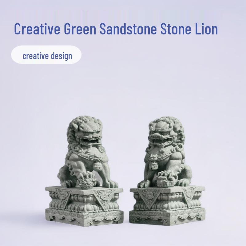 Chinese Green Sandstone & White Marble Lion Ornaments for Fish Tank Decoration