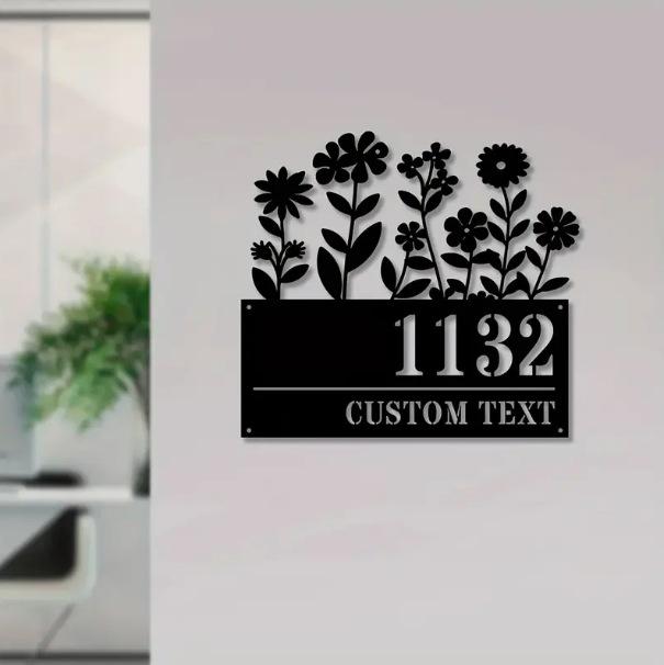 Personalized Iron Address Sign with Floral Design and Custom Street Name