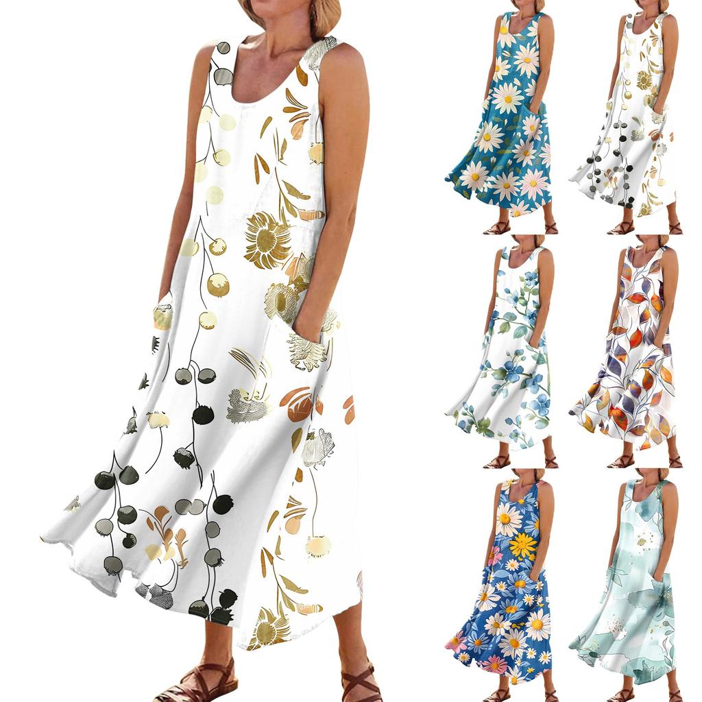 Платье без рукавов для женщин. Женское летнее повседневное модное платье без рукавов с круглым вырезом и карманом с принтом. — купить товар онлайн с бесплатной доставкой по всему миру!