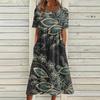 Жен. Повседневные платья Платья с принтами Летние платья С принтами Плиссированные платья-миди с круглым вырезом Классический Классический На открытом воздухе Повседневные С короткими рукавами Свободные платья