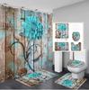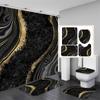 Комплект из 4 цветочных занавесок для душа с нескользящими ковриками, крышкой для унитаза и ковриком для ванной, черная занавеска для душа, водонепроницаемый декор для ванной комнаты