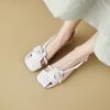 Новый Дизайн Летние Женские Сандалии Полузакрытый Носок Квадратный Носок Цветочная Пряжка Ремешок Открытая Пятка Средний Каблук Обувь Sandalias De Mujer