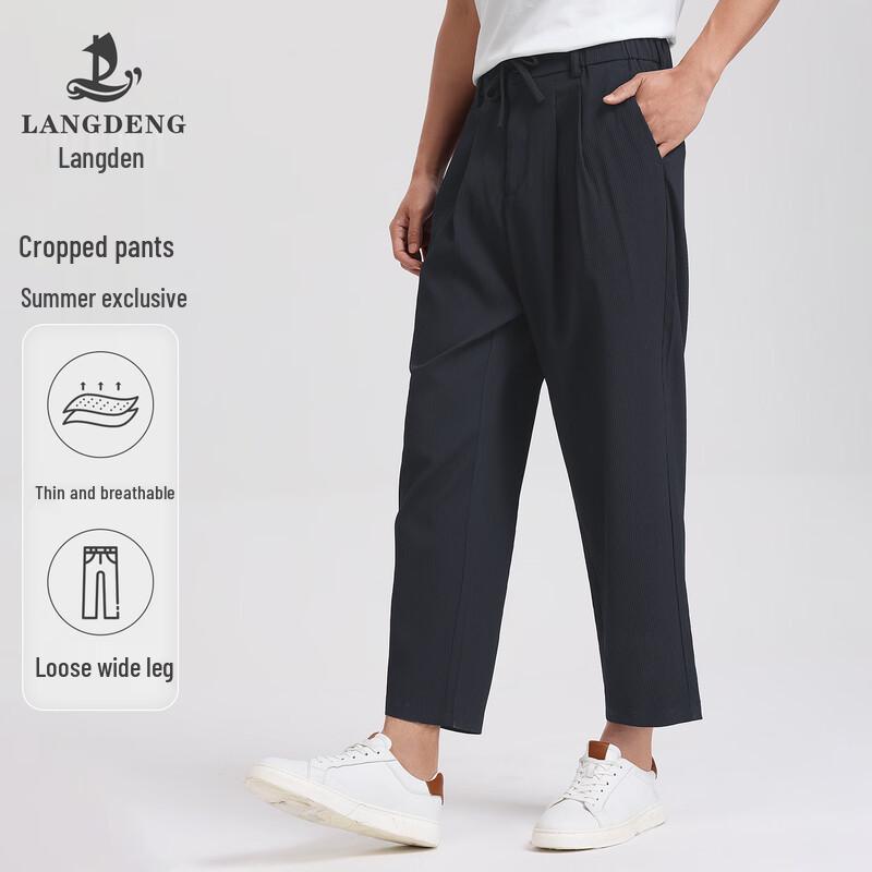Langdeng Men's Loose Straight Tapered Casual Pants