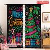 Set Of 2 Flat Printing Merry Christmas Party Curtains Santa Boots Ball Tree Retro Green Red Digital Printed Polyester Drapes Curtain