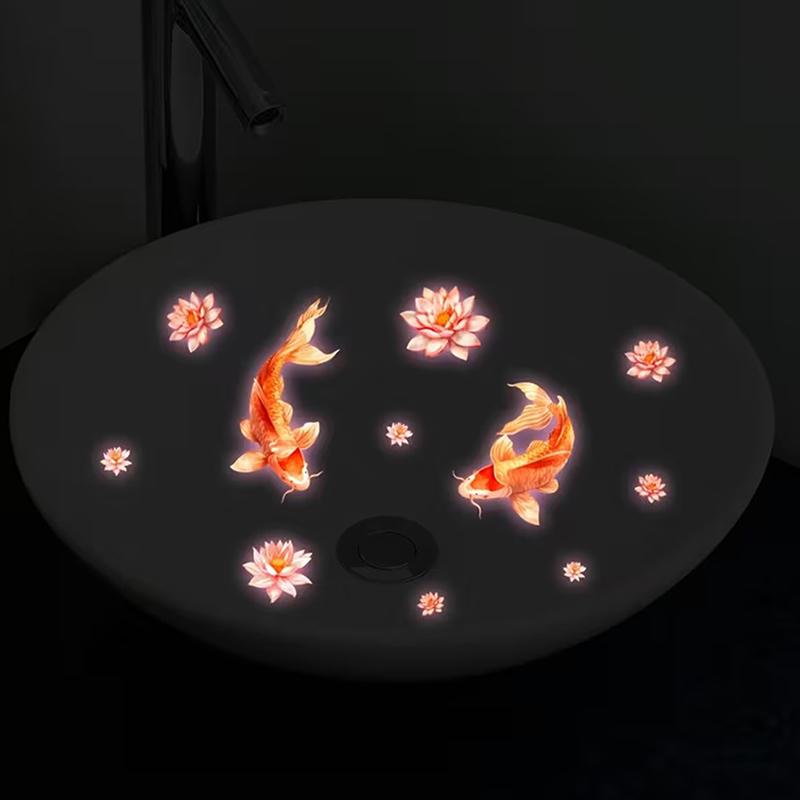 Светящиеся стеклянные наклейки Фэн-шуй с карпами Наклейки для раковин Наклейка для унитаза Наклейки для кухонной мойки Самоклеящиеся Съемные Декор для дома