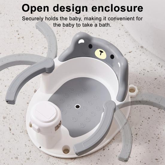 Нескользящая, устойчивая конструкция: Нескользящая основа предотвращает скольжение сиденья в ванне, обеспечивая более безопасную среду для купания вашего ребенка.