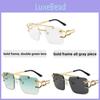 This vintage-inspired, frameless metal sunglasses feature pink polycarbonate lenses with UV400 protection, supporting sun protection and stylish fashion statements. Ideal for outdoor outings, travel, or stage performances, its easy to clean with a damp cloth.